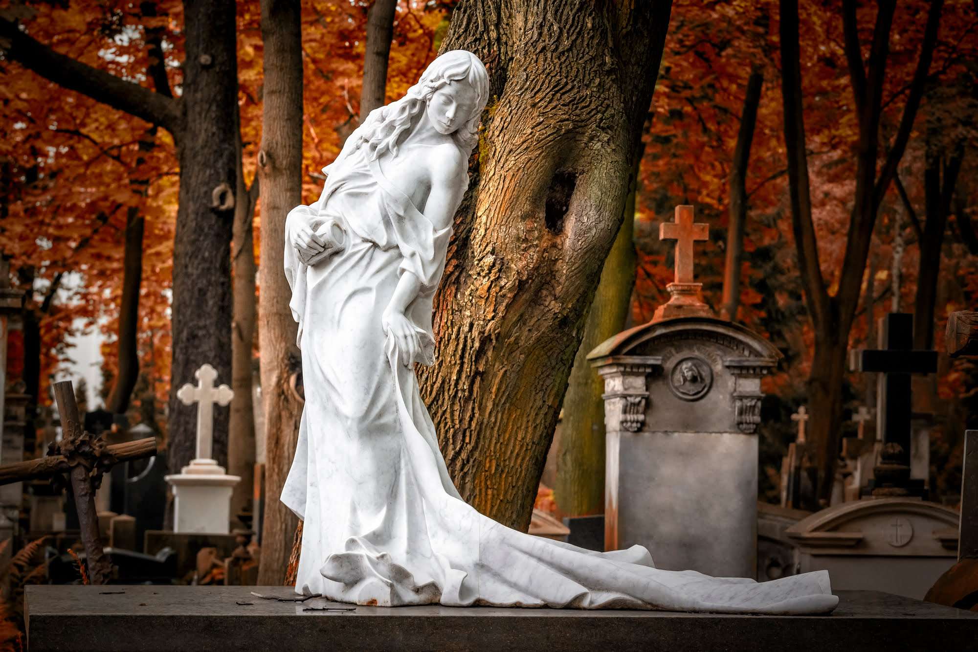 W innych częściach cmentarza zachwyca „Anioł Zmartwychwstania” autorstwa Piusa Welońskiego – skrzydlata postać w stroju rzymskiego legionisty, trąbiąca na Sąd Ostateczny. Nieco dalej, w kwaterze T, spoczywa rodzina Hermanów – ich grób zdobi marmurowa postać kobiety z welonem, symbolizująca żal i nadzieję. To dzieło Bolesława Syrewicza.