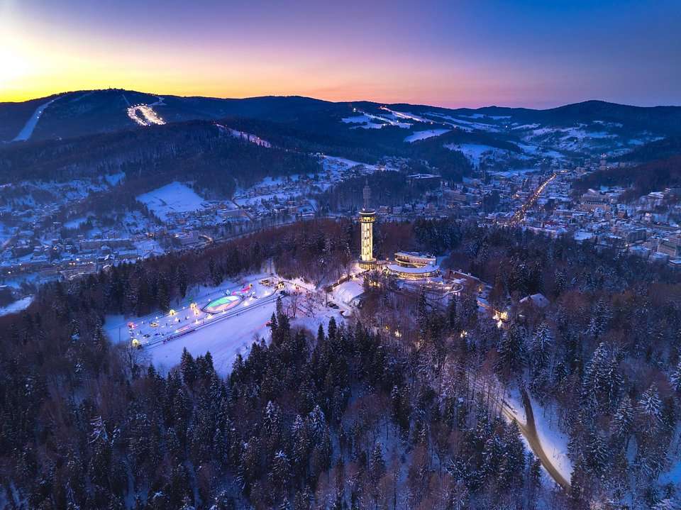 Krynica‑Zdrój od lat kojarzy się z uzdrowiskowym klimatem i historyczną koleją na Górę Parkową. W 2026 roku to miejsce zyskało konkretny, bardzo widoczny atut: trzydziestosześciometrową wieżę widokową na szczycie. Wejście na Górę Parkową nie należy do wymagających, więc wieża szybko stała się celem spacerów zarówno dla rodzin z dziećmi, jak i dla seniorów. W pogodny dzień rozciągają się z niej szerokie panoramy Beskidu Sądeckiego, które w połączeniu z charakterem samego uzdrowiska tworzą przyjemny, niespieszny klimat.