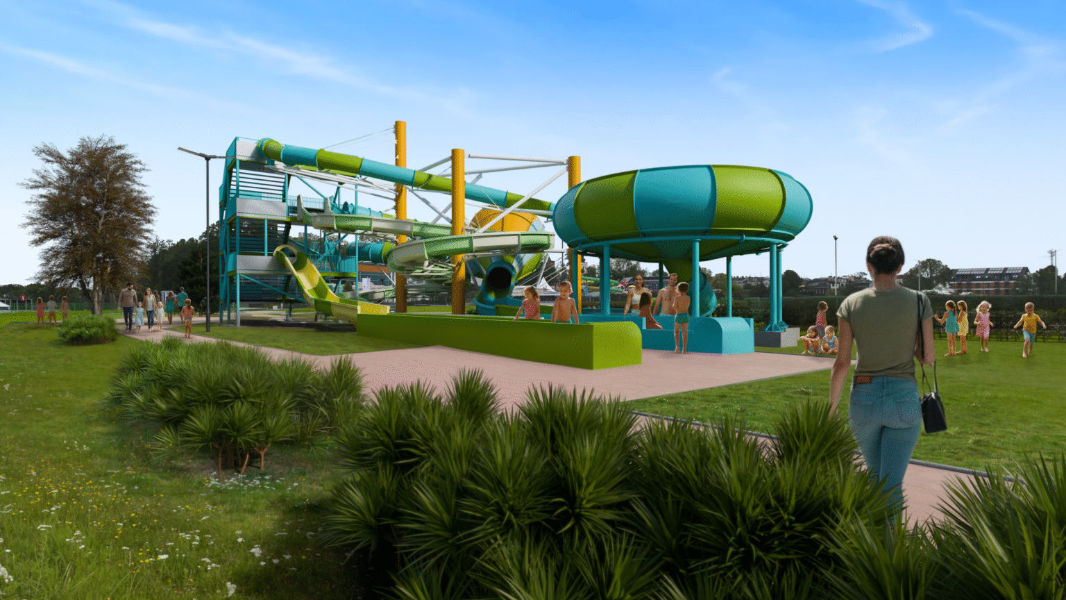 Wśród planowanych atrakcji pojawi się flume ride, czyli wodna kolejka znana z dużych parków rozrywki, w której łódki suną po specjalnym torze z wodą, pokonując zakręty i kończąc trasę spektakularnym pluskiem. Do tego dojdzie cały zestaw nowych zjeżdżalni o wymownych nazwach: spiralny „Tornado”, „Wyścigowe Duo” pozwalające ścigać się równolegle, bardziej ekstremalna „Adrenalina Max” i rodzinna „Family Fun”, zaprojektowana tak, by dobrze bawiły się przy niej i dzieci, i dorośli. Szczególną rolę ma odegrać Ogród Wody – coś między placem zabaw a małym laboratorium, w którym dzięki interaktywnym stanowiskom będzie można w praktyce zobaczyć, jak działają wiry, jaką siłę ma woda czy jaki ma wpływ na ludzkie ciało.